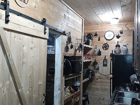 This is a tiny home with two bedrooms full bath kitchen area good size living room fully insulated inside walls are spruce number two high ceilings. This home will have to be moved it is on runners it's a 14x40
