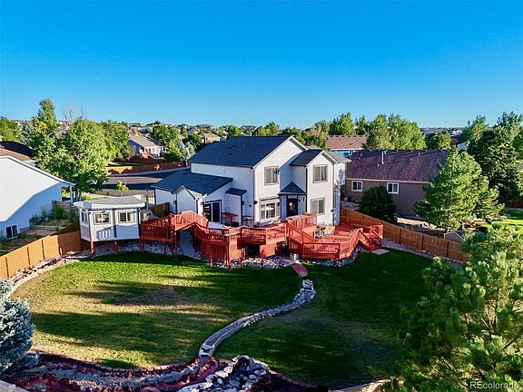 BACK ON THE MARKET!! (Buyer got relocated to another state) Kitchen completely updated!!! It’s beautiful! High-end quartz countertops! And new beautiful lighting! **Breathtaking views, endless possibilities!** Nestled at the end of a cul-de-sac, this property boasts panoramic views and all the right details for a comfortable life. Step into the home with high vaulted ceilings, formal living and dining areas, and speakers throughout. The family room, with its cozy fireplace, is perfect for cold Colorado nights, while the private office with backyard access adds that extra touch of solitude.