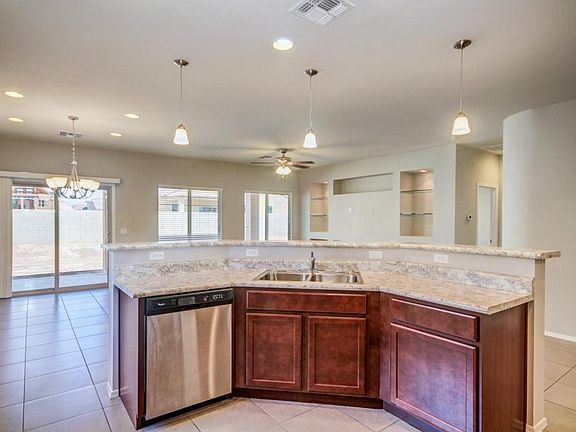Incredible 3 bed 2 bath home with two car garage! Community offers amenities including pool, parks & playgrounds. Open concept kitchen features beautiful maple cabinets with crown molding offering plenty of storage with laminate counter-tops, large island & built in pantry. Appliances include, stainless steel refrigerator, smooth-top electric range, OTR microwave & dishwasher. Spacious floor plan with high ceilings & beautiful ceramic tile flooring. Spacious master bath features dual sink maple vanity, walk in shower & private toilet room. Dual pane windows throughout with blinds. All new ceiling fans & new lighting fixtures. New 2 tone interior & exterior paint throughout. Lovely landscaped front yard. This home is move in ready, come see it today! Washer/dryer convey as is. Agent/Owner.