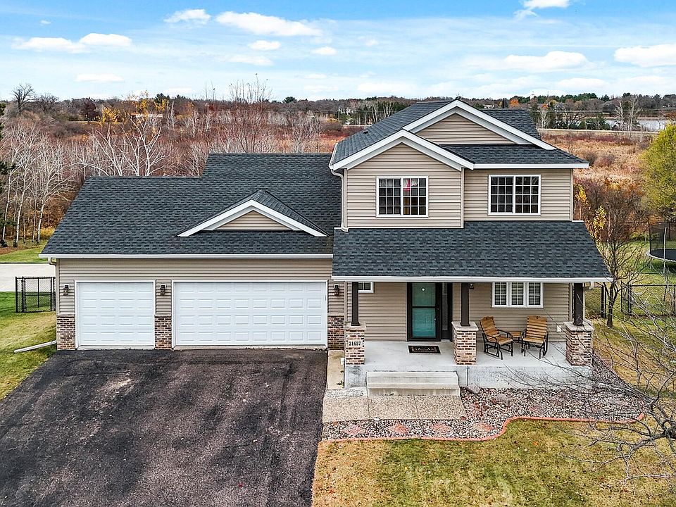Welcome to this beautiful 2-story home offering 3 bedrooms and 3 bathrooms. Nestled in a peaceful two street cul-de-sac neighborhood with very little traffic. Your .33 acres feels more expansive because your home is situated with a natural wetland backyard, which offers a serene retreat right outside your door. Plenty of wildlife...deer, rabbits, pheasants. Enjoy spectacular sunrises from the deck where you can start or end your day. Walk-out basement gives you easy access to the backyard. A lower-level bathroom rough-in offers you a 4th bathroom. A sleek black chain link fenced in backyard, with side gates and back gate, keeps fury pets and children safe. Mature apple tree in the front yard. Three bedrooms on one level, three bath, 3 car garage home provides the perfect opportunity to personalize and make your own. Open concept kitchen/dining/living room with bedroom level laundry. Hardwood oak floors on the main level. In ground sprinkler system. New roof in 2022, washer/dryer and dishwasher in 2019. This property feels like it's miles away but it's close to town for convenience and highways for commuters. It won't last long, schedule a showing today.
