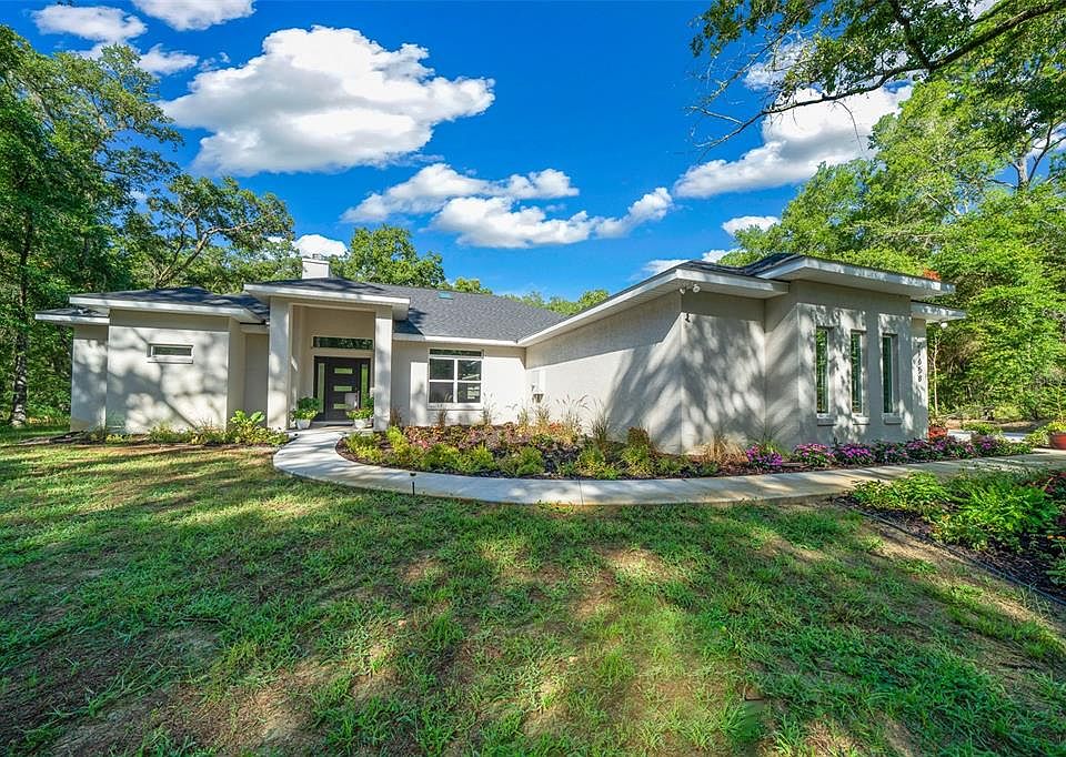 Owner financing is available at 3% interest! Why wait to build? Custom new construction home available for under $186 a square foot. Welcome to your dream home among grandfather oaks and surrounding preserves in the tranquil Rainbow Springs Woodlands. This new construction offers an open and inviting floor plan designed to blend modern and natural beauty. As you step inside this four-bedroom, four-bath residence, you're greeted by a spacious and airy floor plan flooded with natural lighting. The large kitchen boasts quartz countertops, upgraded appliances as well as a large island with bar and seating, providing ample space for entertaining as well as two dishwashers. Retreating to the luxurious primary suite, which stretches the entire width of the home, you will find a large walk-in closet which also includes a small safe room, an elegant sitting area and access to the back porch. The en-suite bath features a beautifully tiled step-in shower, complete with dual shower heads and body jets as well as a soaking tub. A cozy fireplace in the living room is the centerpiece of the living area. Each guest room was tastefully thought out and offers en-suite baths in each room. A guest wing is included, offering its full kitchen, complete with quartz countertops and island with seating, a second full laundry room, an additional HVAC system, as well as second fireplace in the living area of the wing. Home is also wired for a pool. This property is in the back of the neighborhood providing privacy but still just a short distance to grocery stores, restaurants and shopping. Also included is private access to the Rainbow River offering a beach, kayak launch, pool, gym and clubhouse. This new construction is sure to impress even the most discerning buyer. Owner financing terms are 20% minimum down payment 3% interest based on a 20-year amortization schedule with a two-year balloon.