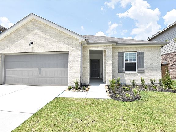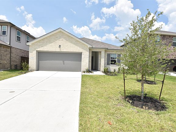 Brand-new single-story home in Harrington Trails offering 1,827 sq. ft. with 4 bedrooms and 2 full baths. The open Firefly floorplan features a spacious living area that flows into a modern kitchen with granite countertops, large island, walk-in pantry, and stainless-steel appliances. Home comes move-in ready with refrigerator, washer, and dryer included. The private primary suite offers an en-suite bath and walk-in closet, while secondary bedrooms provide flexibility for family, guests, or office space. Interior highlights include vinyl plank flooring with carpet in bedrooms, high ceilings, and energy-efficient Low-E windows. Exterior features include a fenced backyard with sprinkler system, patio, and a two-car garage. Community amenities include a pool, clubhouse, playground, and walking trails, all within a growing master-planned neighborhood. Convenient location with easy access to Hwy 59 and nearby shopping and dining.
