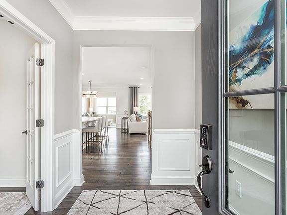 This guest suite down home backs up to a pocket park & is within walking distance to the community pond where you can walk the trail or use your canoe -kayak. Large kitchen with island & quartz countertops has walk-in pantry & overlooks great room for family connectivity. Loft, drop zone at garage entrance, office with french doors & upstairs laundry complete this home. Main living areas have evp flooring. Bathrooms & laundry room have tile and bedrooms will be carpeted. Blinds included too!