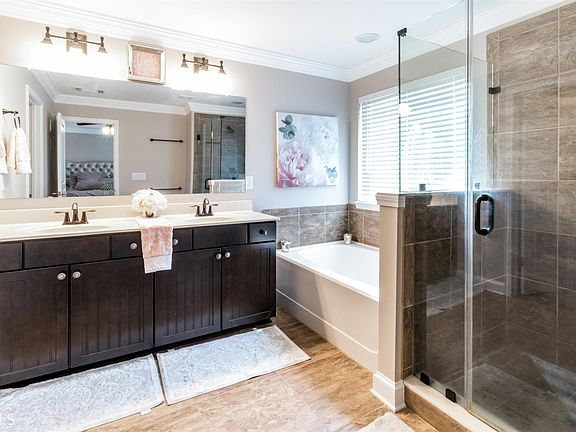 - Interior: Ceilings - Trey, Ceilings 9 Ft Plus, Hardwood Floors, Garden Tub, Double Vanity, Separate Shower, Walk-in Closet