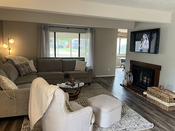 Beautifully updated first-floor end unit condo in Harbortown. Welcome home to this charming and updated 2 bedroom, 1 bath condo located in the highly sought-after and peaceful Harbortown Condo Association-a quiet, friendly community with direct access to scenic Lake Devonshire. This condo offers privacy, convenience, and modern updates throughout. From the moment you enter, you'll notice the thoughtful touches that make this condo truly move-in ready. Features & Updates include: Fully Renovated Kitchen (2023) - Quartz countertops & quartz backsplash - All new cabinets - Stainless steel appliances. Updated flooring throughout. Updated lighting & ceiling fans. Cozy fireplace. Smart home features: Ring doorbell and Nest thermostat. Freshly painted white doors & trim with new doorknobs throughout. New screened-in patio (2023). Attached 1 car garage for secure parking and storage. This is low-maintenance living at its best!