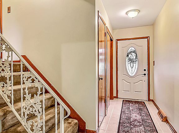 Great 3 bedroom 2 full bath tri-level with 2.5 car attached finished garage on fenced lot! All the major items have been taken care of - newer furnace, central air, tankless water heater, roof, tilt-in replacement windows, entry & storm doors, totally remodeled full bath in lower level featuring hydro-therapy bubbler tub. Main level offers large living room with bow window open to dining/kitchen area with French doors to patio, upper level offers 3 bedrooms with hardwood flooring & full bath, lower level features rec-room with wood burning fireplace, full bath, great laundry/storage room & concrete crawl for added storage!