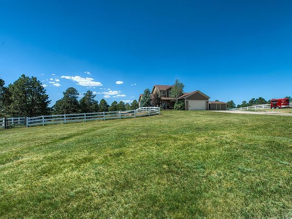This Wonderful Two Story Home has a Main Floor Master Bedroom with 5-piece Bath and a Main Floor Laundry. The Kitchen includes 42" Cabinets, Gas Range, Tile Backsplash, and all Appliances. The Great Room features Vaulted Ceilings and a Gas Fireplace for those cold winter nights or just instant ambiance! Upstairs you will find 2 Bedrooms and a Full bath. The unfinished Walk-out Basement has 9-foot Ceilings and a Rough-in Bath, ready for your creativity and imagination. Already Radon Mitigated! Enjoy the Trex Deck directly off the Dining area that leads down to an Interior Fenced-in Yard that is Perfect for dogs. Bring your horses!! 2 Acres, features a 36 x 30, 2-Stall Barn (panels included), H2O + Elec., White Vinyl Fencing and 2 Separate Pastures. Additional Storage available with a 16 x 10 Utility Shed. The Property Backs to the Neighborhood Bridle Path. Less than a mile from CR13 and 4 miles to the Town of Elizabeth. 12-month home warranty included. Carpet is 2 years, Roof 3 years.