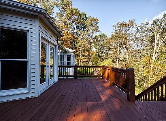 Gorgeous atrium ranch with 5,350 +/- sq ft. Brick/stone front, oversize 3 car garage on private 5 acres! Open floor plan 4 bedroom, 3.5 bath. Fabulous kitchen w/ Granite counter tops, 42" cabinets, center island, breakfast bar, stone back splash, planning desk, newer appliances & walk-in pantry. Bright hearth room w/marble front, wood burning fireplace. Separate dining room w/ wainscoting, arched windows, crown molding & coffered ceiling. Beautiful open Great room with floor to ceiling brick fireplace flanked by built-in bookshelves. A wall of windows look out to five beautiful acres of woods w/walking paths & underground dog fence! Master bedroom suite w/ coffered ceiling, bay window & walk-in closet. Master bath w/ glass block shower, separate jet tub, separate his/her vanity. Finished LL w/ rec room, bar, full bath, bedroom & 3rd fireplace. Newer roof in 2013/2014. AC serviced, newer furnace, zoned HVAC. Bus drops off & picks up at driveway and excellent snow removal service.