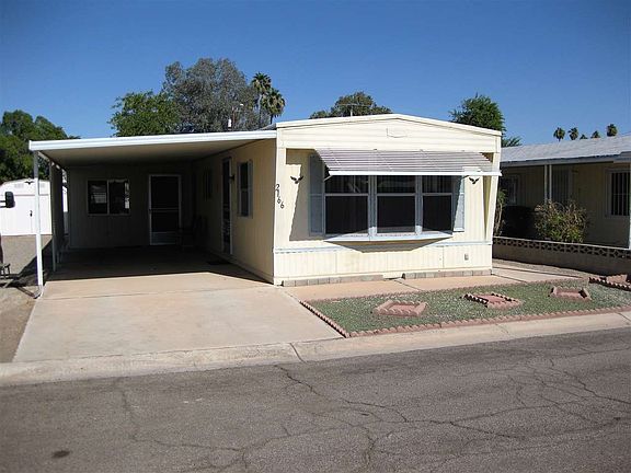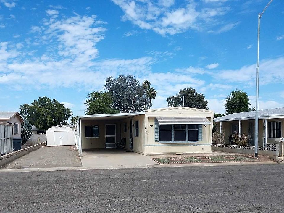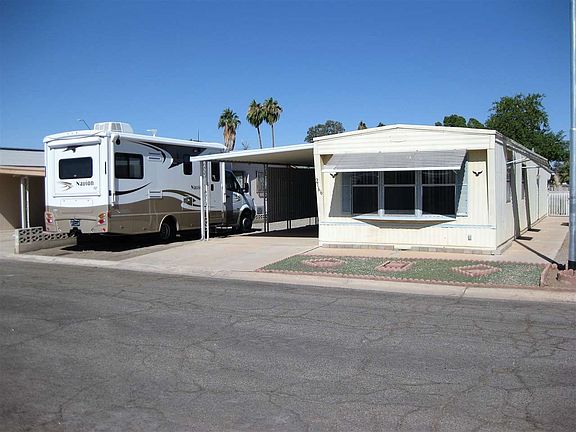 Very nice well kept two bedroom, one bathroom fully furnished single-wide home with large Arizona room in a 55+ neighborhood where you also own the lot. Plenty of space to park your RV, storage shed, fully fenced backyard area, community pool/hot tub, easy care landscaping and many more amenities. HOA fees $375/yr includes cable tv, pool, spa, clubhouse, small workout room, library, pool tables and shuffleboard courts, internet is separate at $157/yr. Very close to shops, hospital and many local amenities.