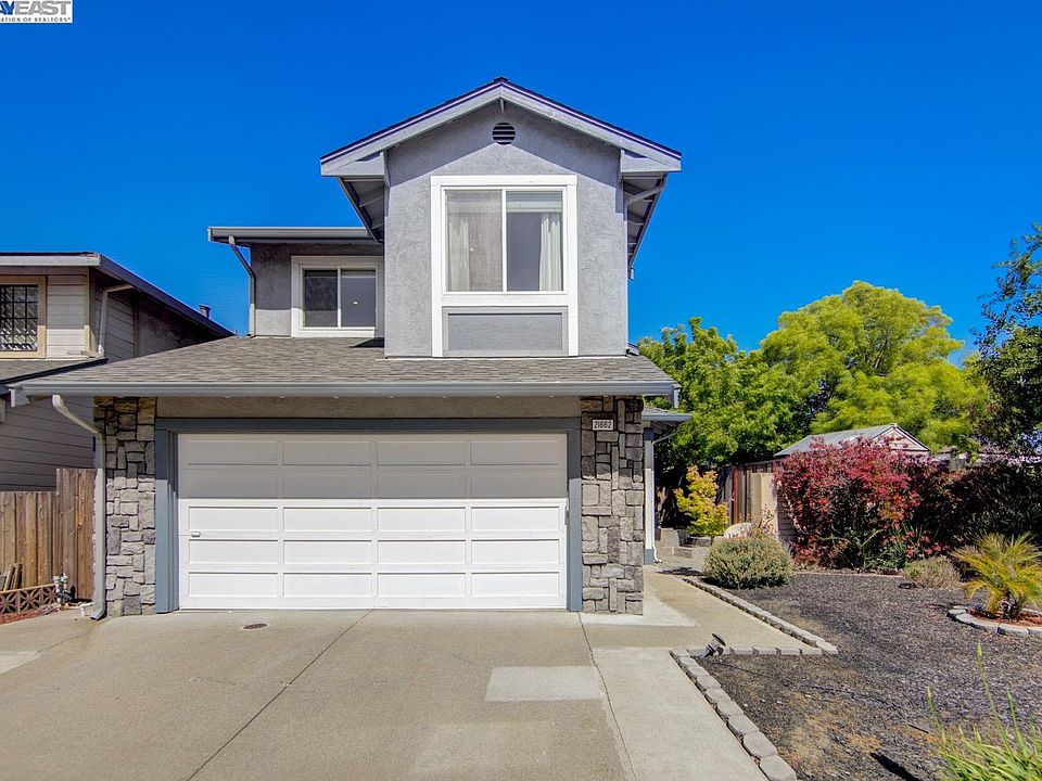 Meticulously maintained home offers modern laminate flooring and newer updated windows. The kitchen boasts generous counter space and a breakfast bar, making cooking and entertaining a delight. Low HOA. Attached 2 car garage, indoor laundry and a private, fenced backyard with lemon, peach and cherry tree. Award winning Castro Valley schools make this area “in demand”. Lots of guest parking. Located near shopping, restaurants, parks. This community’s central location near Meta, Genentic, Google and Apple shuttles, I-580, and BART. Ideal for commuting throughout the Bay Area.