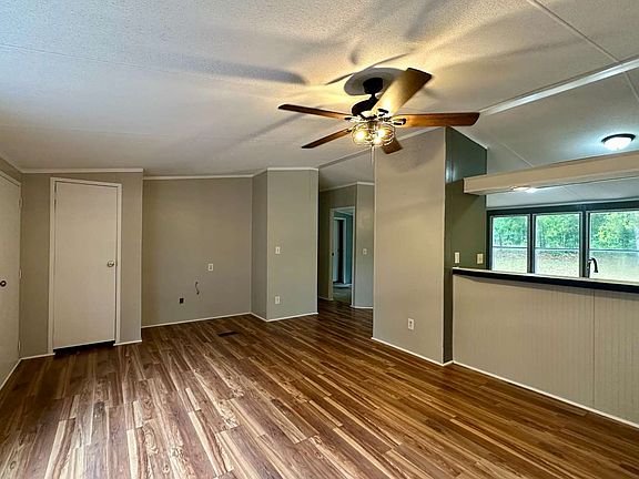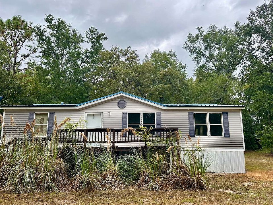 This 3/2 double wide home on one acre offers an inviting living experience. The eat-in kitchen has a pass through looking into the large living room, and a primary bedroom with a walk-in closet and a bathroom featuring a double vanity and a garden tub, with a newly tiled walk-in shower. There is newer LVP and wood laminate flooring. The home also includes a metal roof. Seller is offering carpet/flooring allowance for the 2nd and 3rd bedrooms, depending on offer.