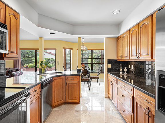 Situated in the heart of Boca Raton, this 5 bedroom, 3 bath, 3 car garage Dominica model home in Town Place Club Villas is a must see. The home has been upgraded with 36 inch imported porcelain tile on the main level and all three bathrooms have been completely upgraded with the finest appointments including a porcelain claw foot soaking tub in the master bathroom. The beautiful Living Room has soaring ceilings perfect for artwork and a stunning fireplace. The Kitchen has natural wood cabinets, pots and pans drawers and high end granite. The home has NEW A/C and all hurricane rated garage doors. The backyard is completely private, fenced and paved with plenty of room should the new family desire a pool. Town Place Club Villas is zoned for all A Rated schools, close to shopping and dining.