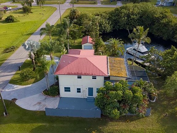 Appointment only. Perfect Florida home on a GULF ACCESS NO BRIDGES Stunning, deep-water canal with the feeling of a private lagoon and backyard sanctuary across from the home that gives you loads of privacy! The oversized lot features a 2-story home, screened lanai with easy to maintain pool, and a private 50-foot dock. The upper level features an over-sized master suite, an enclosed sunroom and a small balcony with it's own private entrance. (Could be an in-laws quarters) The kitchen was remodeled in 2015 with new cabinetry, Corian Countertops and Stainless Steel appliances. The A/C system downstairs was replaced in 2019 upstairs was replaced 11/2018. Water Heater replaced 2019. The lanai/pool enclosure was re-screened 11/2018. Large Shed for your storage and circular driveway.