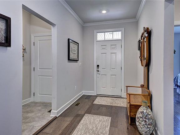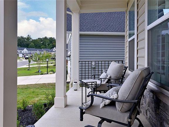 Welcome Home to 2167 Fallon Circle! Presenting an upscale "Discovery" home backing to a private and tranquil wooded setting. A charming covered front porch welcomes you and a quality designed layout greets you inside. Beautifully appointed craftsmanship, wood flooring and stunning plantation shutters throughout the main living areas. A gourmet kitchen with upscale appliances and cabinetry flows perfectly into the family room and dining area. A large Primary en suite offers two closets and an upgraded bath area with custom touches to enjoy! Lots of extras in the Lower Level too...a large rec room with wet bar/kitchenette, an impressive guest bedroom with large walk-in-closet. Enjoy "Movie Night" in your very own state of the art Media Room, featuring an 85" TV, 7.1 high-grade sound system and raised platform for seating....WOW! Plenty of room for storage & work-shop in the unfinished area. Built in 2024 but better than new. Loads of well thought of extras have been already added.