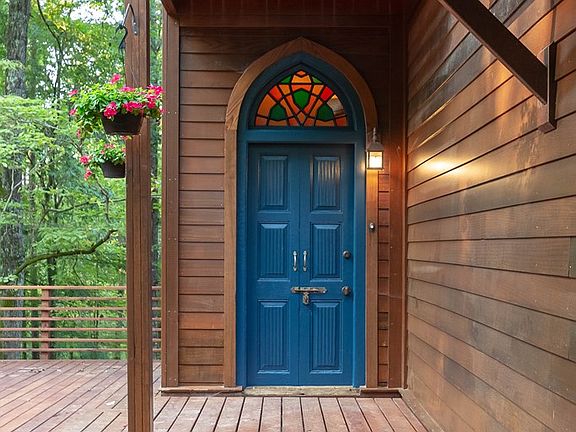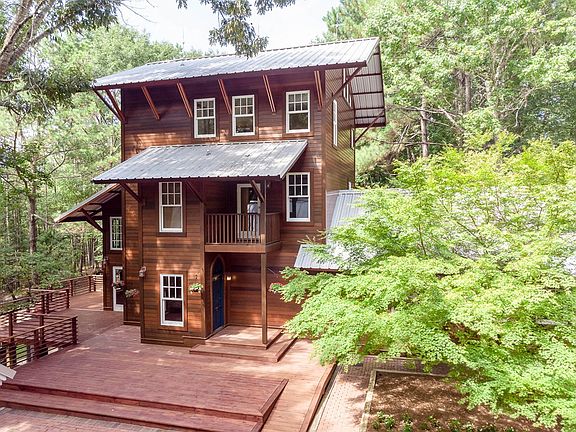 Tucked in the trees, this 12 acre wonderland of rolling wooded landscape, surrounded by the blissful serenity of nature, is a one-of-a-kind home. Designed & constructed w/ the unique & distinctive character of true talent & craftsmanship. This multilevel chalet style home fits seamlessly w/ the natural landscape & 'treehouse' like setting. With its redwood exterior, expansive decks & breathtaking views from every window & level, this home will kindle your excitement for a new lifestyle.