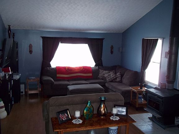 This beautiful 3 bedroom, 1 bath, two-story, 1473 square-foot house is located on 1.6 acres down a quiet country road with a surrounding front and back yard including a back patio perfect for BBQs and a nice flower garden in front. This cozy home is complete, not only, with a wood burning stove in the living room adorned with cathedral ceilings and french doors leading to the back patio, but also a gas fireplace located in the entrance way to the home. All bedrooms are good-sized. Spacious laundry room is located on the first floor, with a door exiting to the back yard. 12x12 shed in the back yard provides extra storage.