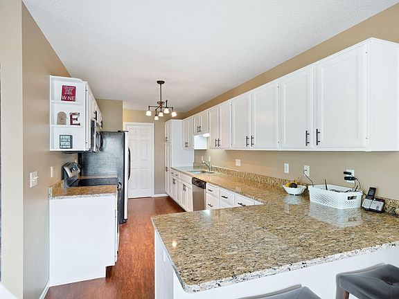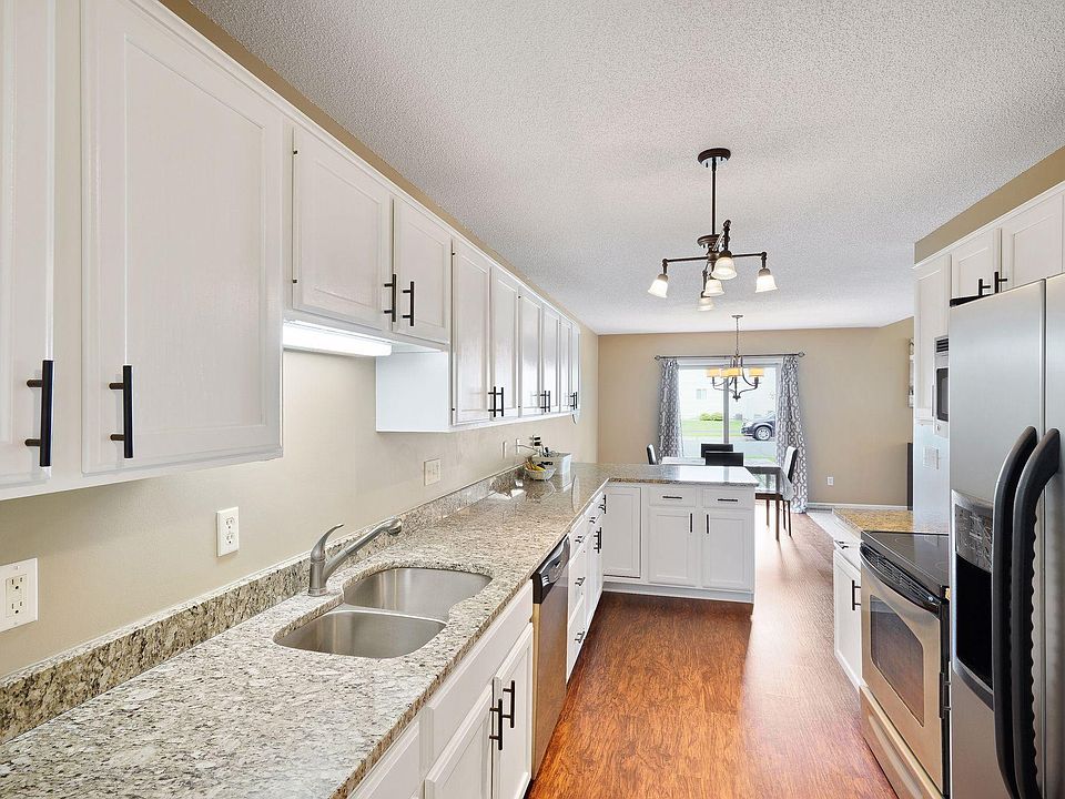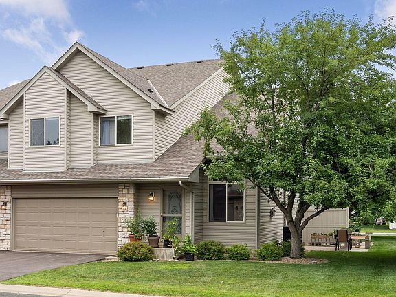 Lovely corner unit townhome filled with natural light. Roomy living room with soaring ceiling and cozy gas fireplace. Large galley kitchen with white enameled kitchen cabinetry, on trend backsplash, stainless appliances, granite counter top with room for a breakfast bar and dining area that walks out to private patio. Laminate flooring 2015, furnace and AC 2017. Driveway 2019, roof and siding 2020. The upper level bath and 2nd upper bedroom with walk-in closet and large private bath. Wonderful loft area, full bath and 2nd upper bedroom. Fully finished basement with living area, family room, additional bedroom and storage area. Fully finished 2 car garage!