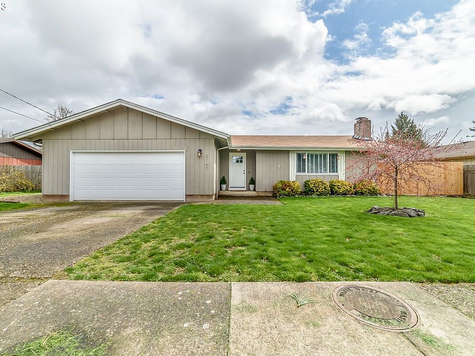 Beautifully updated single level home in quiet west Eugene location! Updates throughout include quartz countertops, vinyl flooring, paint, SS appliances, the list goes on! Completely remodeled bathroom with tile and character-forward double vanity. Abundant light fills the open concept living and kitchen spaces, and additional room creates opportunity for interior third bedroom or office. Large lot is completely fenced with RV/boat parking, and ample room on both sides of the house for clearance to backyard. Sizable backyard is teeming with possibilities with raised garden beds, mulch and patio! Home is situated nicely on non-thru street, aids with low traffic and peaceful setting. Good schools, great proximity to amenities and thoroughfares. Don't miss this charming home!