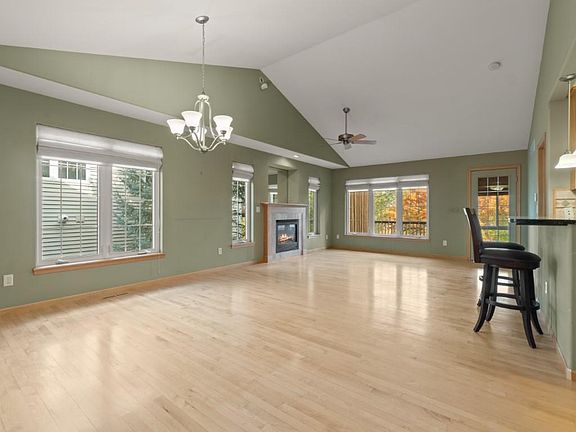 Located on a beautiful cul-de-sac, this sunlit 4 bed, 3 full bath zero lot has a convenient layout and plenty of space. The huge LR/DR boasts a cathedral ceiling, gas fireplace, multiple large windows, and doors leading to a gorgeous wooded view from the deck. There's a broad breakfast bar connecting this area to the lovely kitchen for easy entertaining. The kitchen also has stainless steel appliances, granite countertops, a large pantry, abundant maple cabinets and a laundry closet nearby. The spacious main level primary suite features a cathedral ceiling, walk-in closet, primary bath with double sinks, and doors to a stunning 3-seasons porch. Additionally, there is an ample office/4th bedroom and full guest bath on main. You'll love the huge LL with two more roomy bedrooms - one with walk-in closet, a large family walking out to a humongous deck, and a full bath. It also has plenty of storage space in the utility room. New LL paint, new roof 2022. A/C serviced June 2024, new vanity