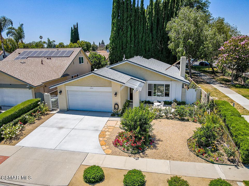 Welcome to this charming 3 bed, 2 bath single story home situated in the heart of Simi Valley in the highly sought-after Tempo community. This light and airy turnkey home features vaulted ceilings and has been beautifully updated with laminated wood floors, newer windows, HVAC system and stone fireplace. A chef's kitchen featuring a repurposed wood accent wall, custom cabinetry, granite countertops and stainless appliances opens to a spacious great room, ideal for entertaining and comfortable living, with doors that lead outside to a lush, landscaped backyard. The garden is blooming with a variety of flowers and fruit trees that have been purposefully planted to create feng shui harmony and balance.Enjoy beautiful Sequoia Park views from your living room and pleasure in peaceful strolls, jogging or walking pets in the adjacent greenbelt. Ideally located, this delightful home is close to the local elementary and high schools, shops and restaurants.