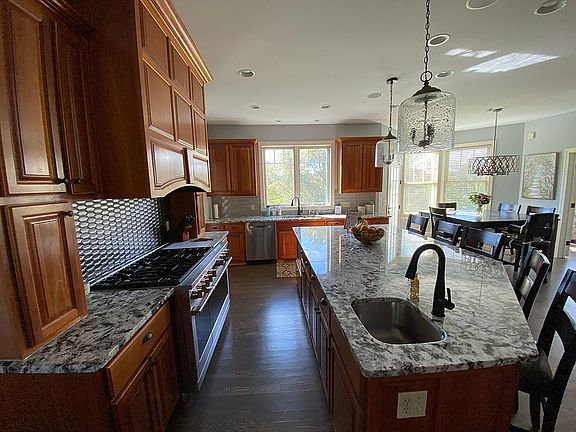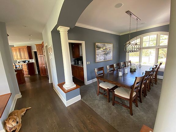 Full property upgraded security system, two offices, exercise room, sunroom, sauna, big granite center island kitchen with pro stainless steel appliances - 48” wide 6 burner Monogram range with griddle and 48” wide fridge, Cherry cabs. Two separate Garages: 976 Sq Feet Main & 682 Feet below, lots of storage. All 3 levels are open with panoramic views. Main floor living room is vaulted with fireplace & entertainment center. Main floor office is off the foyer. The master bedroom also has a fireplace. The entire back of the 2nd story is the Master Suite. His & Her Walk-in closets, then master ensuite bath with separate whirlpool tub & walk-in tile shower, then walks to the large 2nd floor laundry. Big open Family Room with built in surround system leads to the Billiards Room which leads to the wet bar. The lower level office is adjacent. On the other end of the Lower Level is the 5th Bedroom & 3/4 bath. Also an Exercise Room with TV with attached separate sauna. Speakers with Sonos audio throughout lower and main levels in 8 rooms. 9 hole disc golf, large play set, on 3.45 acres next to clean pond at the end of a large quiet cul-de-sac.