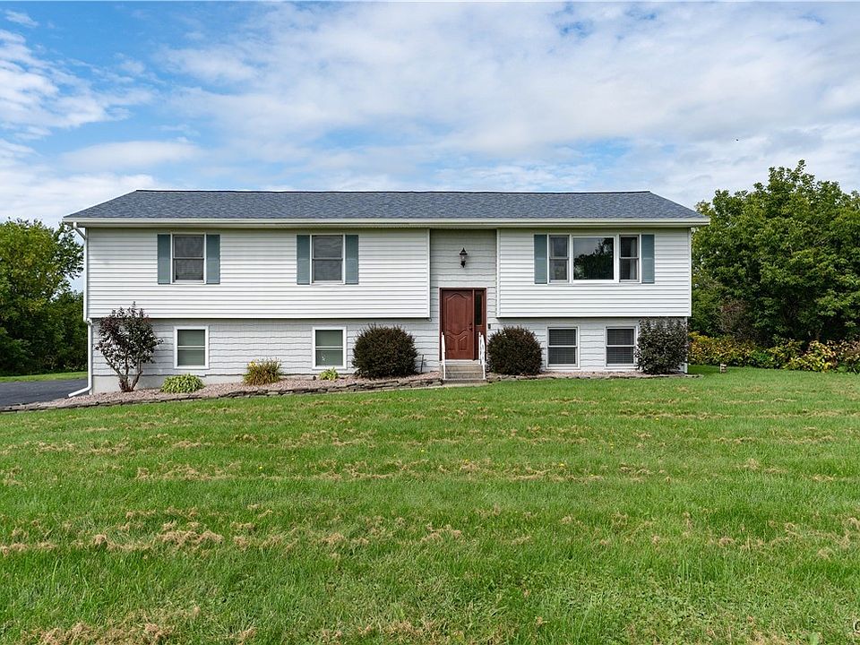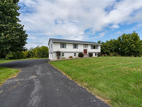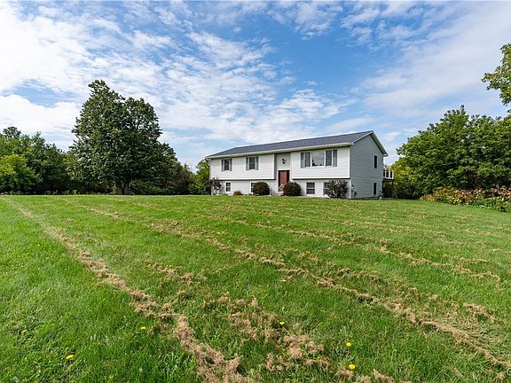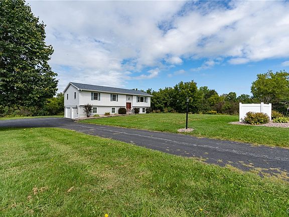 TURN KEY! From the minute you walk into this home, you will be drawn to every single update that has been completed since 2021. Walk into the front door of this raised ranch and you will see from the floors, to the ceiling everything has been updated. Every wall has been painted, every floor new. Up the stairs to the open floor kitchen, living, dining combo - kitchen is a must see. The cabinets and appliances all new from 2021. From dining there are sliding glass doors to then new double extra large trek deck that looks out to the over 4 acres of land. Down the hallway there is a brand new bathroom/ laundry combo followed by 2 bedrooms. The primary bedroom is at the end of hall with custom closet and a full remodeled bathroom. If you enter from your heated/air conditioned 2 stall garage, you walk into a basement foyer, with new bath and an expansive additional room with fireplace. The entire home has central air; replaced Aug 2024! The lightning is HUE lighting controlled with an app and the ring cameras will also stay.