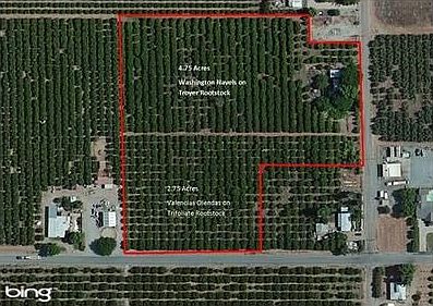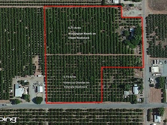 Excellent opportunity to own your own citrus business or hobby farm. This 7.5 acre parcel located in Lindsay, the heart of Tulare County's citrus production region, is planted with mature trees with 4.75 acres of Washington Navels on Troyer root stock and 2.75 acres of Valencias Olendas on Trifoliate root stock. Existing 1940's home has 2-3 bedrooms and could be used as a rental for extra income.