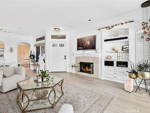 Welcome to resort-style living in the prestigious 55+ community of Palmia! Ideally situated at the end of a tranquil cul-de-sac, this impeccably maintained residence offers both privacy and charm, with a lush, grassy entryway and a serene, shaded path leading to your front door. A beautifully inviting, secluded front porch sets the tone for the elegance that awaits inside. Come through the entryway into a spacious, sun-drenched living room designed for comfort and style. Large windows frame picturesque views of the beautifully designed, low-maintenance backyard, complete with a harmonious blend of manicured landscaping and tasteful hardscaping—perfect for relaxing or entertaining. Plantation shutters throughout the living area and primary suite lend an upscale, designer touch, while a cozy fireplace with a classic mantle creates a warm and welcoming ambiance. The open-concept dining area is generously sized to host memorable dinner parties, lively game nights, or intimate gatherings. Adjacent, the light and bright kitchen features abundant cabinetry, ample counter space, and a charming breakfast nook ideal for morning coffee. Retreat to the expansive primary suite, your private sanctuary, featuring dual closets with custom storage and an en-suite bathroom complete with a walk-in shower and safety bars for ease and peace of mind. A secondary bedroom is thoughtfully positioned on the opposite side of the home for ultimate privacy and is perfectly appointed with built-in shelving, a custom desk, and a queen-size Murphy bed—ideal for guests or use as a home office. A second full bath with a tub and shower combo, also with added safety features, completes the thoughtful layout. Additional highlights include a convenient indoor laundry room with sink, and direct access to the spacious 2-car garage. Peace of mind comes with recent upgrades such as full home re-piping, a newer air conditioning system, and a water heater. Living in Palmia means enjoying world-class amenities: tennis, pickleball, a putting green, three sparkling pools and relaxing hot tubs, a state-of-the-art fitness center, billiards, and an impressive calendar of year-round social events. Residents also benefit from exclusive membership to the renowned Mission Viejo Lake Association. Don’t miss your opportunity to experience the ultimate in active, luxury living. Schedule your private tour today!
