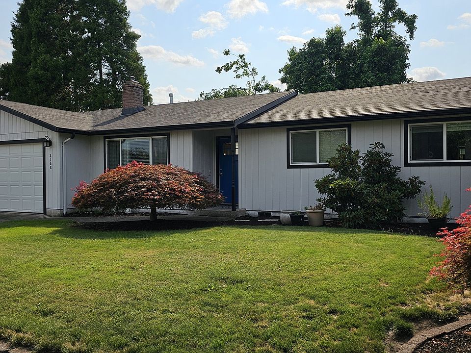 Completely rebuilt/remodeled, new everything ground up including the roof. 3 bedrooms, 2 and a half bathrooms. Living room with gas fireplace, dining area with double glass doors (French style) leads to covered patio, kitchen is open to living and dining area. Hall from kitchen leads to utility area, garage, half bath and third bedroom. Hall from Living room leads to full bathroom, second bedroom and large primary suite (private bathroom and 6x10 closet with built in storage). Oversized 2 car garage. Large fenced back yard with matured landscaping, water features and a utility/storage shed.