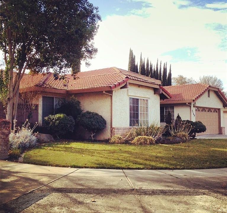 Located in a highly desirable area of Merced just 1 block from the jogging trails of Bear Creek. As a corner lot this home boasts a large fully landscaped front and backyard. Separate living and family room, kitchen with title counters, a kitchen bar area, separate dining area, fireplace, jetted tub in master bedroom, his and hers sinks in both bathrooms, separate office area, Spanish style tile roof, automatic sprinklers in both front and backyard as well as paved RV parking.