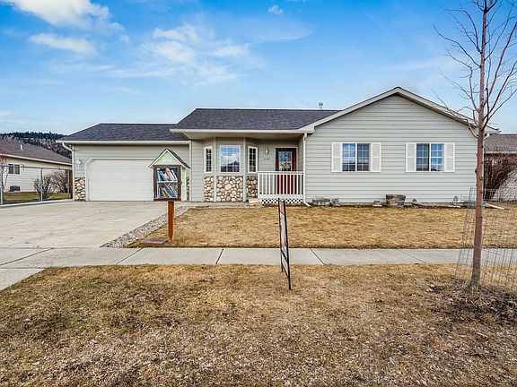 Welcome to Golden Eye Court, Kalispell—comfort, convenience, and charm meet at this beautiful home, located less than 10 minutes from Flathead Lake and only 8 minutes from Kalispell's restaurants, schools, and shopping! This thoughtfully designed property boasts a covered front porch, an open floor plan with vaulted ceilings, updated farm sink, built-in shelving & a cozy bay window with a built-in bench in the living area, a large pantry, mudroom/laundry room just off of the oversized, attached 2 car garage. With 3 bedrooms and 2 full bathrooms, this home offers walk-in closets in every bedroom, while the primary suite includes dual closets and an en suite bathroom.