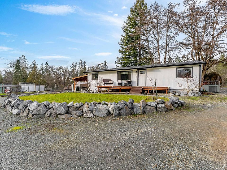 Welcome to this turn key 3 bedroom, 1 bathroom stick built home offering 1,152 square feet of comfortable living on a spacious .65 acre lot located just outside the Grants Pass city limits. Ideal for anyone looking to be out of town while still remaining close to local amenities, this property offers a large circular driveway providing easy access, along with a carport overhang, full RV hookups with a 50 AMP service, and a brand new packaged HVAC system. The fully fenced property features a gated entrance, a beautifully rocked seasonal creek, and irrigation servicing the newly added front lawn. The spacious backyard is perfect for entertaining with a lawned firepit area and space for outdoor dining, barbecues, or gardening. Inside, the home offers an efficient layout with a large primary suite complete with a spacious closet and move in ready condition throughout. Enjoy the feel of country living with the convenience of nearby town amenities and schools.