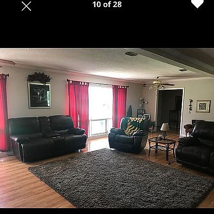 Nestled in a grove of mature oaks, this fully furnished 5 bedroom 2 1/2 bath home boasts a total of 5,061 square feet of living space. It sits on a total of about 4 1/2 acres including 420 ft of Hwy 90 frontage. With over 3100 square feet of heated and cooled living space and more than 1900 square feet of outdoor living space, there is plenty of room for a large family to spread out. This home's lush green lawn is kept beautiful even during dry seasons by an irrigation system that was installed in 2017. The roof was replaced in 2019. Two out buildings offer additional storage and shelter for lawn equipment and the backyard playhouse/fort is sure to be a happy place for the kids. The American Dream awaits!