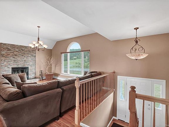 Your search is over! You will be wowed from the minute you walk in the door of this meticulously cared for home. Magestically perched on 5.60 acres offering breathtaking picturesque views. Living room enhanced with Large bay window! Boasting an ultimate floor plan of over 2100 sq.ft. which includes 3 bedrooms, 3 full bathrooms, an open living room/dining room area, Cozy up next to the gorgeous modern stone fireplace. Beautiful kitchen with unique colored granite countertops and stainless steel appliances. Gleaming hardwood floors. An abundance of natural sunlight shines through this home. Lower level includes a huge open multipurpose room great for entertaining or just relaxing, Laundry Room and a full bathroom. Pellet stove on lower lever. Relax and enjoy the beautiful outdoors from either of the two decks, one upper and one on the lower level. Large fenced in yard area. This home offers the perfect country lifestyle for any buyer. This home sparkles, nothing to do but move right in. Call today to schedule a showing.