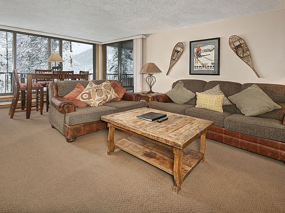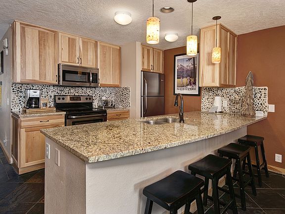 Large, nicely remodeled Pines two bedroom with east views of forest and mountains. Open kitchen features new hickory cabinets, stainless appliances. 16" slate flooring in entry/kitchen/dining area. New carpet, raised-panel alder doors. Remodeled baths with granite and under-mount sinks. Washer/dryer! Angled wood-burning moss rock fireplace, Covered deck. Great indoor pool/hot tub facility. Close to walking/bike path along Snake River. Pet friendly for owners only. Shuttle to ski base.