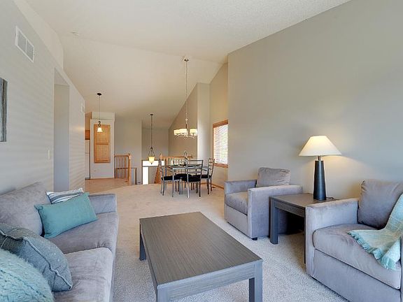 Lovely end-unit townhome that is move-in ready. Home and development offer many outstanding features. New carpet and paint. Vaulted ceilings, gas fireplace, walkout lower level and maintenance free deck. Common area includes outdoor pool area, party room, and park area. Great home!, Directions Main Street (Hwy 101) to Elm Pkwy, west to Trail Way, south to Linden Way.