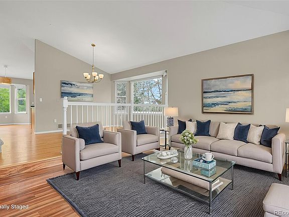 Super clean 2-Story 4 bedroom / 3.5 bath gem in the Villages of Parker! Abundant natural light throughout, Open floor plan, Freshly painted interior, Newly finished wood floor, Brand new carpet throughout and a large entertainment deck new in 2023. Finished basement includes recreation room, bedroom and full bath. Huge backyard with mature landscaping including fruit trees. Wired for whole home sound. Fiber internet available. 220v available in garage. Save with solar power . Impact resistant roof. Conveniently located with easy access to downtown, the airport, and two nearby reservoirs. Move-in ready.