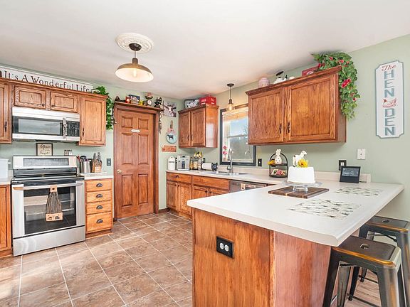 • Features: Counter Bar, Kitchen Island, Pantry, Planning Desk, Tile Floor, Walkout, Window Treatment, Wood Cabinets