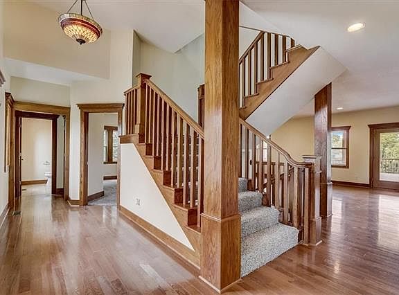 Live your best lake life in this beautiful estate near Lake Miola! No need to wait as this spacious home is move-in ready. Enjoy all 5000+ square feet of architectural beauty on an estate sized lot backing to the tree line of Bur Oak Estates. Bur Oak Estates is adjacent to Lake Miola recreation area including boating, skiing, swimming, and fishing on a 200-acre lake, picnic areas, a playground and hiking trails. Not far, is historic downtown Paola with its museums, festivals and quaint atmosphere. Your home is ready for move-in with all new carpet, new water heater and fabulous wood accents, stainless steel appliances, hardwood floors, and grand backyard deck and patio. Brilliantly laid out, the main living area includes a fireplace with built-in bookcases and opens to the kitchen and formal dining room. Your home office is adjacent to the main living area and includes French doors for the privacy you may need for a business call. Upstairs, relax in the glorious and secluded primary suite including wet bar, jetted tub, double sinks & walk-in closet and shower. Bedrooms 2, 3 and 4 and laundry room are also located on the upper level. Adjacent to the laundry room and a few more steps up is a playroom with beautiful natural light. The finished lower level includes a second kitchen, family room and two more spacious bedrooms. From the lower-level family room, you can access the covered patio and enjoy the views! Bring your boat and store it in the oversized 3-car garage. Come see this beauty and start enjoying your lake life today!