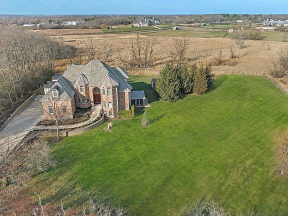 Magnificant custom built all brick home on 6 acres in very private setting, yet close to everything! Dramatic Foyer with lavish staircase welcomes you to this light, bright and open home w/10 ft ceilings, hardwood flooring & meticulous millwork throughout. Elegant Dining Rm and dramatic Living Rm with floor to ceiling windows offering dramatic views. Gourmet island Kitchen w/custom cabinetry, granite & top-of-the line appliances including Bosch, Viking, and Thermadore. Brkfst Rm is poised between Kitchen and comfortable Family Rm complete w/tray ceilings & stone fp. 1st floor Master Suite w/tray ceiling, huge WIC, luxury BA w/stone tiling, jetted tub & sep shower. Unique Music/sitting room at the mezzanine level. 2nd floor includes 4 additional Bedrooms, including optional 2nd for MSTR. Fantastic Bonus Rm for crafts, home office, or anything you like! Custom built-ins in Loft area complete 2nd flr. Enjoy the 3-Season Rm w/fp & hot tub. Immense LL w/fp is awaiting your ideas. Add'l highlights: alarm, central vac, generator, 12x20 ft shed, expansive deck, perennial garden ,invisible dog fence & 4 car garage! Minutes to Metra, town, library, shops & more