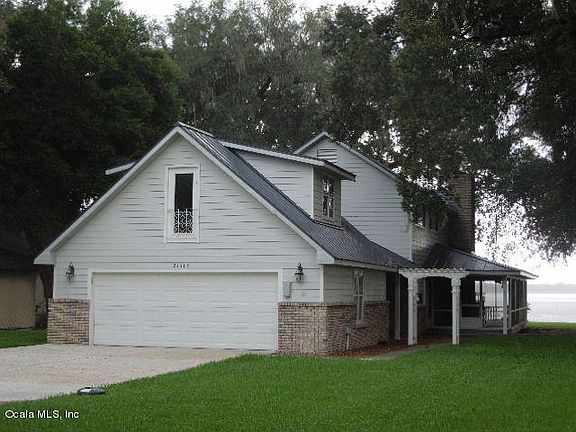 Big, Bold & Beautiful 3/3 home on Lake Kerr. 1 1/2-story frame home with huge living room, brick fireplace, great kitchen with breakfast bar, dining area, all new appliances, huge pantry, laundry room with washer/dryer. The master bedroom is downstairs and has French doors opening to the screened porch overlooking the lake. 5 sets of French doors in the living room that opens to the L shaped porch and gives a glorious view of the lake. There is a grill built into the brick wall, behind the brick fireplace. There are 2 bedrooms and bath upstairs & loft used for additional sleeping area. Beautiful spacious lot with large oaks, paved drive, sprinkler system, 4'' well, composite dock, boathouse and sandy beach. So much more!