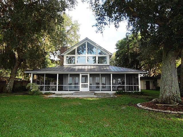 REMODELED Gorgeous lakefront home with floor to ceiling windows overlooking pristine Lake Kerr in the Ocala National Forest. Huge open floor plan with brick fireplace and large kitchen. Wrap around screened porch includes built in grill. OVERSIZED enclosed bonus room over garage. Large lot with massive oaks provide just the right amount of shade. White sandy beach!! Dock was recently redone using composite material decking and includes boathouse and lift. Home has best materials available - Hardee board siding, brick and metal roof.