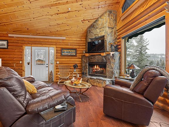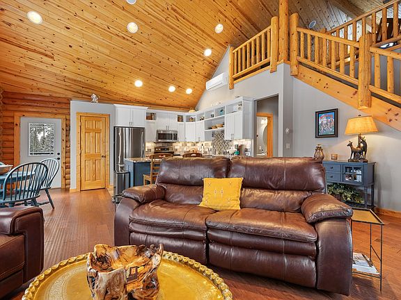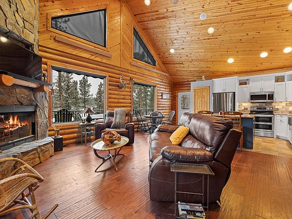 Listed by Kera Williams, KWBH, 605-415-6636. Combining rustic design with modern updates, this one of a kind cabin is nestled on 2.38 acres and backs to thousands of USFS acres! *Quality log construction, beautiful knotty pine walls and ceilings, custom woodwork throughout, remodeled kitchen and bathrooms, wrap around Trex deck and more make this home a must see! *3 bedrooms, 2.5 bathrooms and 2,344sqft *The main floor's 18' vaulted ceilings compliment the living room's wall of west facing windows, and allows for a corner woodburning fireplace with impressive floor to ceiling slate stone surround *The corner kitchen was recently remodeled with shaker style cabinetry with crown molding and soft close drawers, granite counterops, newer stainless steel appliances, a pantry closet, stainless steel farmhouse style sink with a custom herringbone tile accent and a large island for added seating and storage *Cozy dining area for meals *Main floor half-bath off kitchen for convenience *Main level master suite with comfortable bedroom, spacious walk-in closet and a 4 piece spa-like bathroom complete with soaker tub, dual vanities and a custom tile walk-in shower *Multi-use 12'x18' loft space with 2 half-wall closets- use as a den, office space or play room- bring your ideas! *Walkout basement has a large family room with large windows and a dry bar area, 2 bedrooms, a finished laundry room and an updated bathroom with impressive corner walk in shower