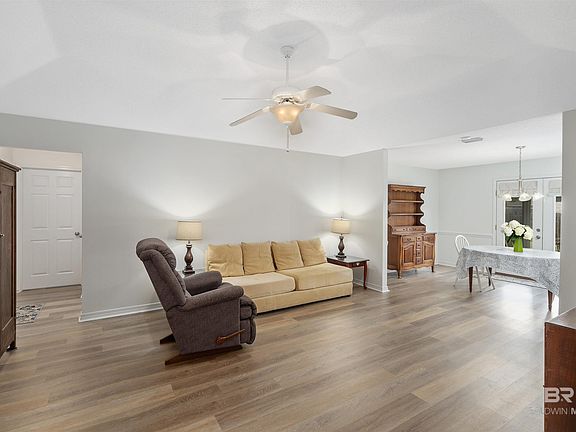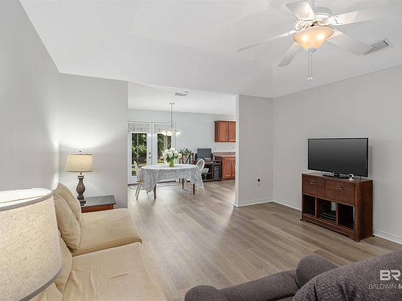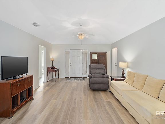 Step into this inviting brick residence on Shadowbrook Street, where comfort and convenience await. Recently updated with a new roof in 2021, this home promises both low-maintenance living and potential savings on insurance. The freshly landscaped front yard and charming covered porch create a warm welcome. Inside, you'll find an open and airy layout featuring new flooring throughout, combining durability with easy upkeep. The living and dining areas seamlessly blend, while french doors open to a versatile screened patio—perfect for outdoor entertaining, dinners, or unwinding in the serene backyard. The kitchen stands out with its stained cabinetry, ample counter space, and a handy pantry. Designed for privacy, the split bedroom plan includes a primary suite with a tub/shower combo, dual vanities, and walk-in closets. Two additional guest bedrooms and a guest bath enhance the home's functionality. Ideally positioned near Interstate 10 for traveling, Foley and Gulf Shores for shopping and beaches. This property offers a blend of affordable living while being centrally located! Buyer to verify all information during due diligence.