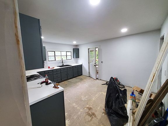 Light fixer upper, hard stuff is finished New roof New wiring and electrical service New water and drain lines All New drywall and insulation New tub, shower, toilets, faucets and sinks New siding and gutters on front side of house New baseboard heating Walk in closet for master bedroom. Laundry connections located in master bathroom. Natural gas connection in basement near furnace location. Furnace is older and needs ductwork. Home still needs flooring and baseboards