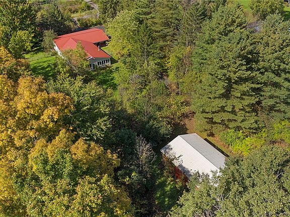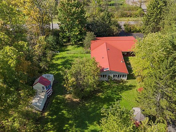 Discover your dream home in this beautifully maintained ranch. An abundance of storage with a huge oversized garage ideal for boat or car enthusiast's in addition to a separate covered storage structure resembling a light house, gazebo for gathering, and attached workshop that may be used as an additional room or returned to garage space. This practical 3-bedroom, 2-full-bathroom home showcases an open and inviting layout that flows seamlessly with laundry on the main level. Large windows with views of the secluded fenced in backyard and a sunroom with hot tub perfect for relaxing. Perennial flowers and garden on 1.7+ acres conveniently located near Ithaca and Dryden. Many ADU features and newer essentials including the hot water heater, furnace, and metal roof promoting a move in ready home primed for entertaining, hobbies, and overall serenity!