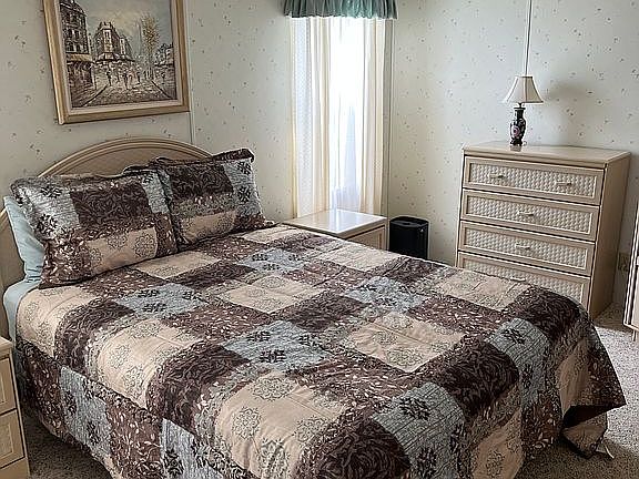 Beautiful 1991 well maintained Fleetwood 24 x 40 can be yours today with 2 bedrooms, 2 full bath featuring a large eat at Kitchen with a lot of storage space. Laminate flooring in Living room, Dining room and hallway. Hallway leads to master bedroom with a new queen size memory foam mattress and furniture set. Guest bathroom and bedroom are off hallway as well. Bedroom has 2 new twin memory foam mattresses and dresser. Master ensuite bath has new toilet, sink and fixtures as does Guest bath. Vinyl flooring in both bathrooms. Outdoor screened room sits out front making a comfortable room to enjoy morning coffee or afternoon cocktails. Golf cart garage houses washer and dryer and storage. This lovely well maintained home is completely turnkey with nice furniture and includes a golf cart. Brand new whole house replumb with PEX completed June 2022. ($5500) Low lot rent, currently $840 with lovely green space and no rear neighbors close in. Lowest priced home in Cypress Lakes Golf and Country Club resort. Community is 55+, but younger may apply. Cypress Lakes boasts 2 golf courses, tennis, pickleball, 2 pools, 2 spas, a large gymnasium, horseshoes and a full social calendar. The ballroom houses card rooms, craft rooms, library and business center along with the bar and restaurant and pro shop with billiards. Come out and take a look at what Cypress Lakes has to offer. If you are looking for an active lifestyle...look no further!! Buyer(s) must make application to community management.