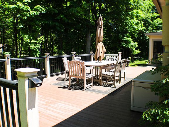 Ranch home, open floor plan, main floor laundry, outbuilding, almost 2 acres, 3 bedrooms on main floor, 2 more downstairs,private setting, laketon township home. 3 full baths, plus a half. updated kitchen with granite, and nice eating area, formal dining too, fireplace in upper level family room, which leads out to the deck that overlooks Green Creek and the woods. Large Master bedroom with walk in closet. Wait until you see the lower level family room, the space goes on and on. 2 bedrooms dow n and full bath, dry bar and tons of storage as well.All new wood floors added upstairs, surround sound in both family rooms.You will not be disappointed in the openness and the brightness of the home. Come see for yourself.