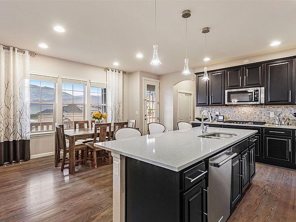 Volterra with a walkout basement and epic Mt Morrison & Red Rocks views! Large, spacious floor plan with 4 bedrooms and a 3 car garage. The open-concept floorplan flows from the Great room to the open kitchen, designed for high-style convenience with a large island, double oven, gas cooktop, S/S appliances, and espresso cabinets. On-point finishes and Grey hardwood floors throughout the main level, staircase, and upper hallways. Spacious master suite with a large walk-in closet that connects to the laundry room, how cool? Outdoor living with an extended patio and a right-sized yard. Solterra is nestled in a postcard-perfect world between urban Denver and the surrounding Green Mountains, offering residents a four-season wonderland for active living. This award-winning community is draped in breathtaking views and an inspired architectural vision that takes cues from the Tuscan countryside. From its spectacular natural surroundings to its centerpiece clubhouse, Solterra has it all.