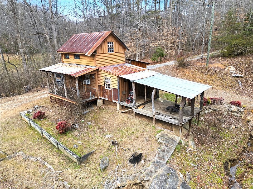 Embrace the allure of nature in this secluded haven with two rustic cabins, thoughtfully constructed with many on-site materials, offering a unique retreat like no other. Stay toasty by the wood stove, listen to the rain on the tin roof, and gaze over the pond of your idyllic property. Come, discover the possibilities with these two cabins on unrestricted acreage. These cabins share a private well, ensuring a self-sufficient and eco-friendly living experience. Inside, the mixture of hardwood floors and stone accents creates an inviting atmosphere, while tree limbs repurposed for arches and railings add a touch of nature to the space. The upper cabin features a rustic shower, garden tub, walk-in closet, bedroom with adjacent living area, and two outdoor seating areas. The lower cabin features a lovely living/dining experience and two covered porches overlooking the acreage. Ideally located in Sunset, SC….just a short drive to Lakes Keowee and Jocassee, public boat launch sites, Clemson University and many other area attractions. Escape the ordinary and immerse yourself in the tranquility of this rustic getaway!